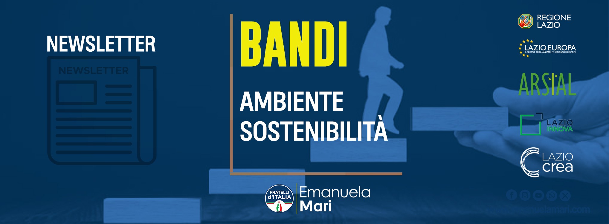 Bandi Europei dalla Regione Lazio AMBIENTE•SOSTENIBILITÀ FONDO PERDUTO Sostituzione veicoli commerciali inquinanti Scade 31/3/ '26 PER RICHIESTE SPECIFICHE SU ALTRE OPPORTUNITA'VI PREGHIAMO DI SCRIVERE A ufficiostampa.emanuelamari@gmail.com EMANUELA MARI Consigliere Regionale del Lazio 1301 Via della Pisana, 00163, Ponte Galeria-la Pisana Questa email è stata inviata a {{ contact.EMAIL }}. Hai ricevuto questa email perché sei iscritto/a alla nostra newsletter. Unsubscribe